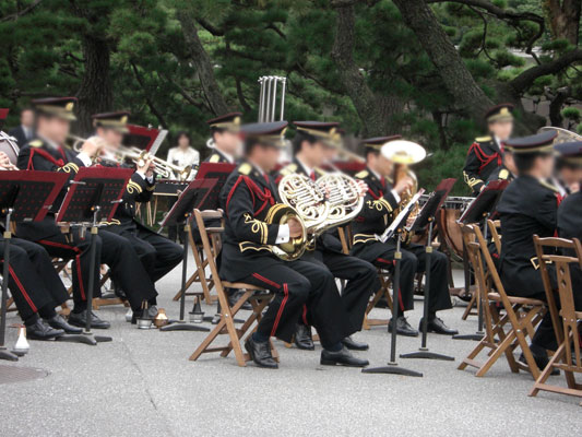 記帳所のそばで皇居の警備??の音楽隊が演奏してました。衣装かっけー!