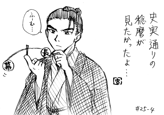 松陰の東北視察とか「吾をも・・・」の歌とか、ちゃんとリアルタイムで出しとけよ!今出されても何の感慨も無いよ!え?OPでいつも流してるって?