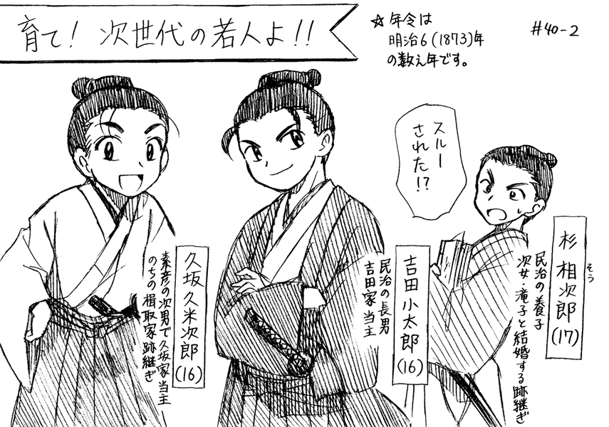 後継ぎといえば、杉家は小太郎が吉田家に行ってしまいました。ではどうするか?