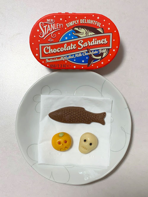 イギリス土産で頂いた、サーディン型チョコとマジパンのパンプキン&スカル